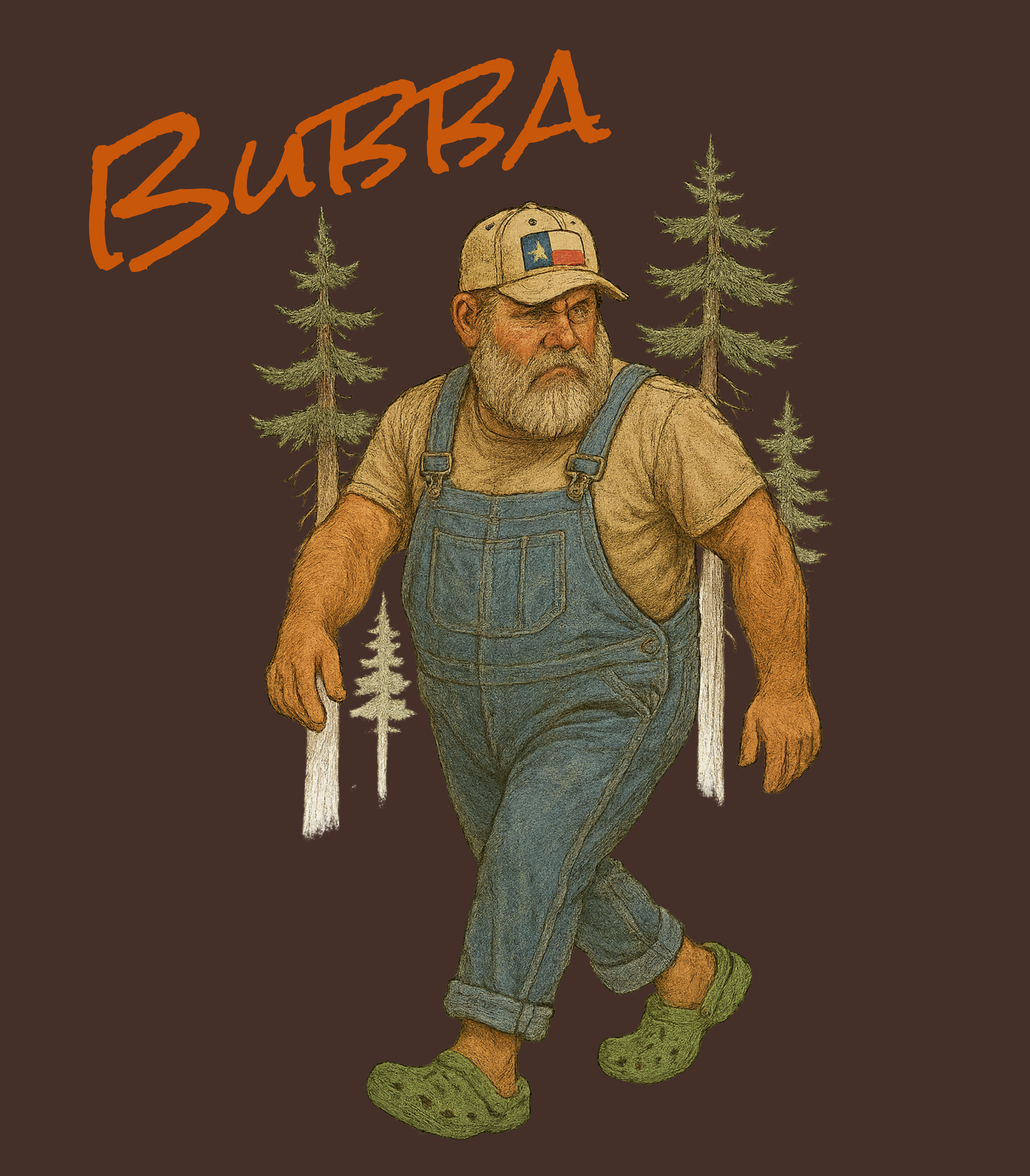Straight outta Texas and deep into the heart of Michael Morgan’s stand-up set, the Bubba tee brings to life the legendary redneck icon from one of his crowd-favorite bits. Sporting overalls, crocs, and a proud “don’t give a damn” attitude, Bubba is the type of guy who feels most at home with a beer in one hand and a fishing pole in the other. Whether you’re from the Lone Star State or just love a good laugh about country culture, this shirt is perfect for fans who know that every friend group’s got a Bubba—and if yours doesn’t, it’s probably you.