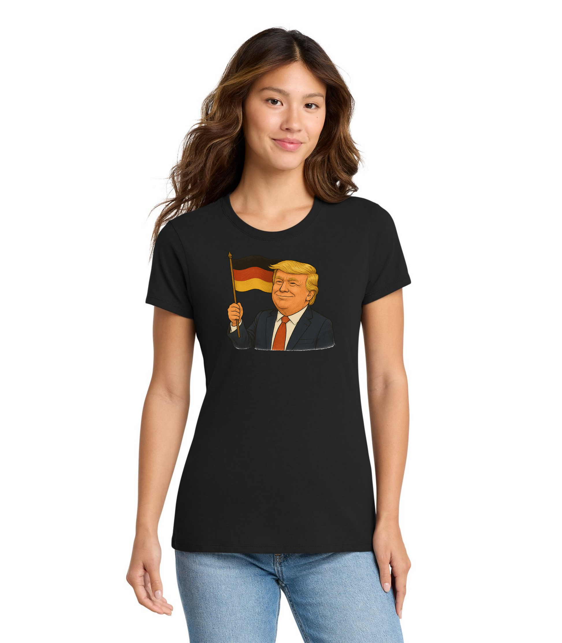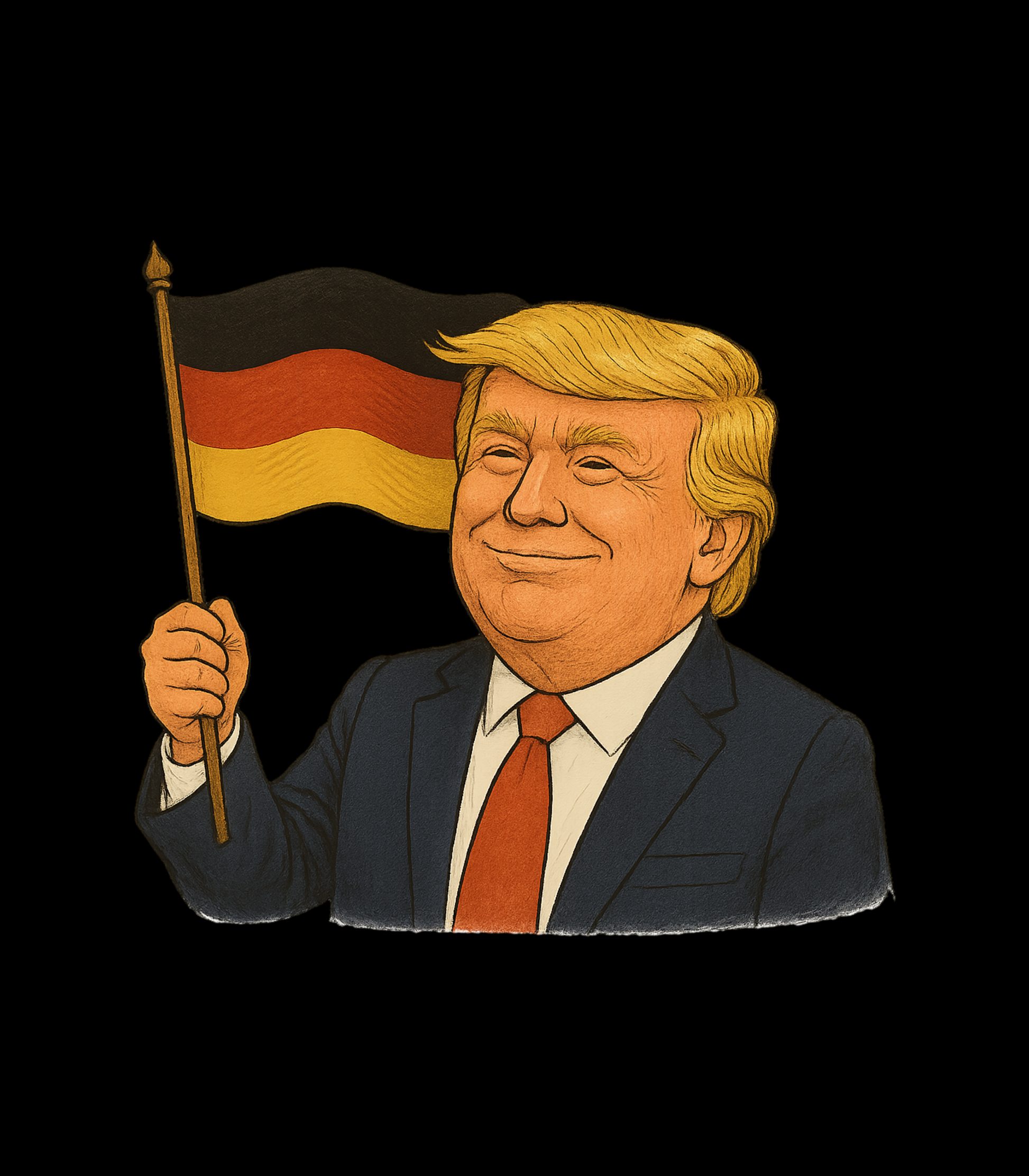 Bring one of Markus Olind’s most popular Instagram characters to life with the German Trump Caricature Tee. This shirt features a cartoon-style illustration of a confident, suit-wearing political figure proudly holding a German flag—a playful nod to Markus’s recurring “German Trump” bit that fans can’t get enough of.