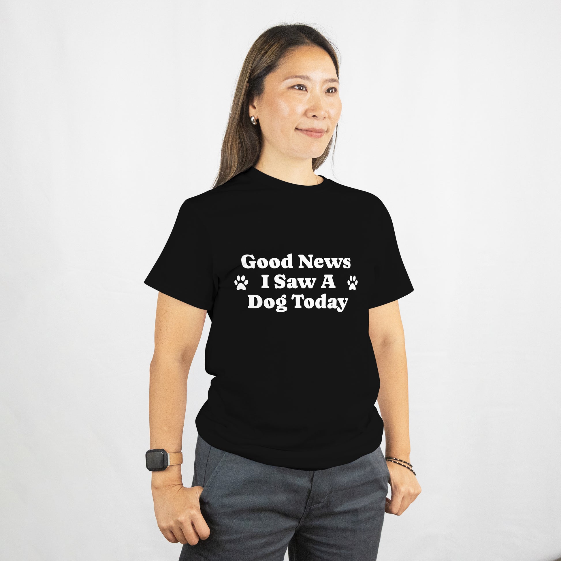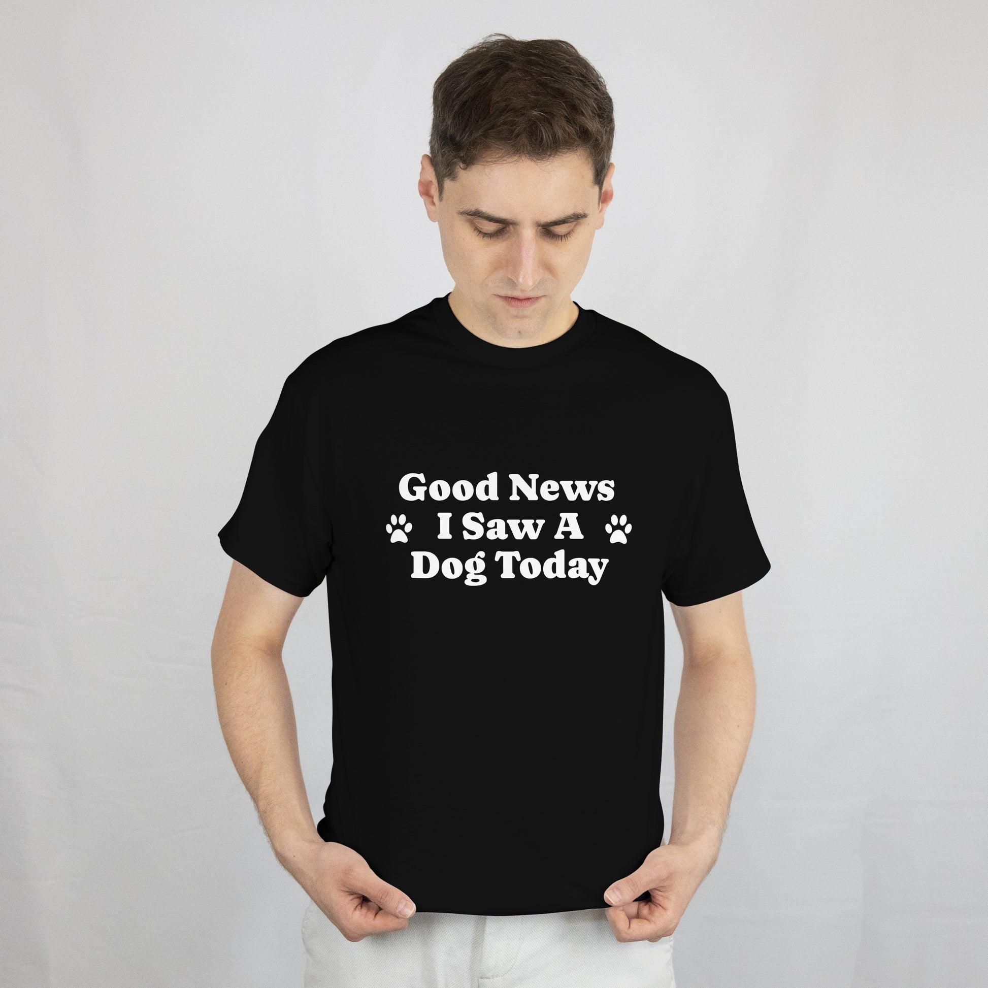 Spread pure joy with this feel-good favorite. Featuring the cheerful phrase "Good News, I Saw A Dog Today" on the front, this tee is perfect for dog lovers and anyone who celebrates the little things in life. Made from lightweight 4.3 oz 100% cotton, it’s soft, breathable, and designed for all-day comfort. Whether you're out for a walk, grabbing coffee, or just sharing your love for furry friends, this shirt brings smiles wherever it goes—just like dogs do.
