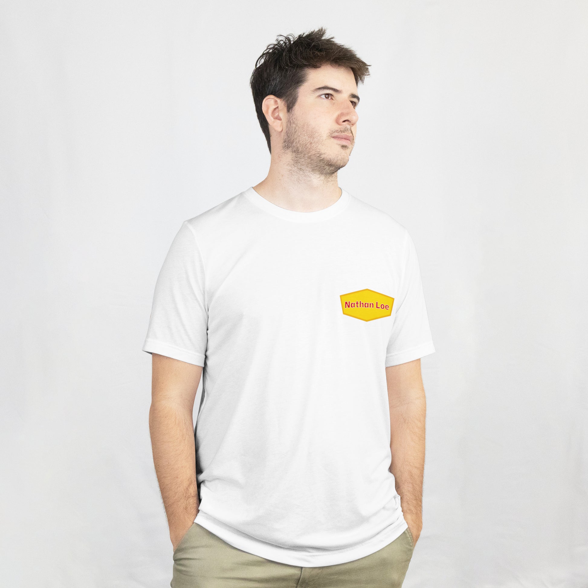 Now, that punchline comes to life in this original Nathan Loe tee featuring a cartoon waitress with battlefield trauma in her eyes, a plate of barely-held-together breakfast in one hand, dog tags around her neck, and a grenade tucked casually in her apron pocket. It’s a hilarious nod to Nathan’s live bit about mistaken identity, public awkwardness, and his unapologetically sideways view of the world.