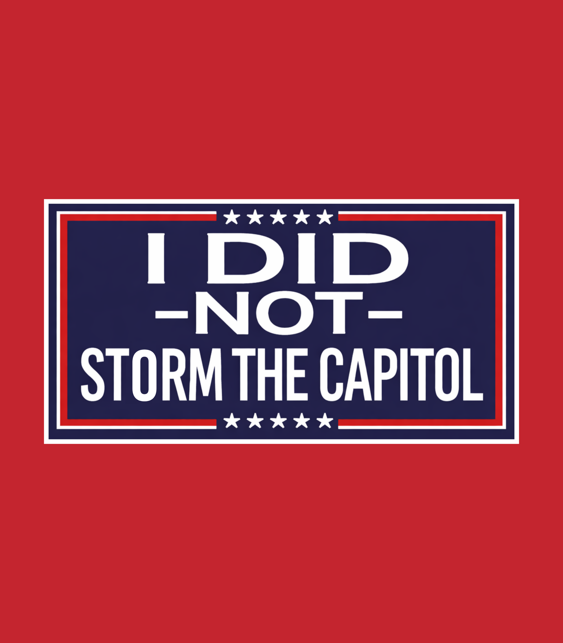 The I Did Not Storm The Capitol tee uses bold typography and classic campaign-style design to make a statement that’s equal parts dry humor and cultural commentary.