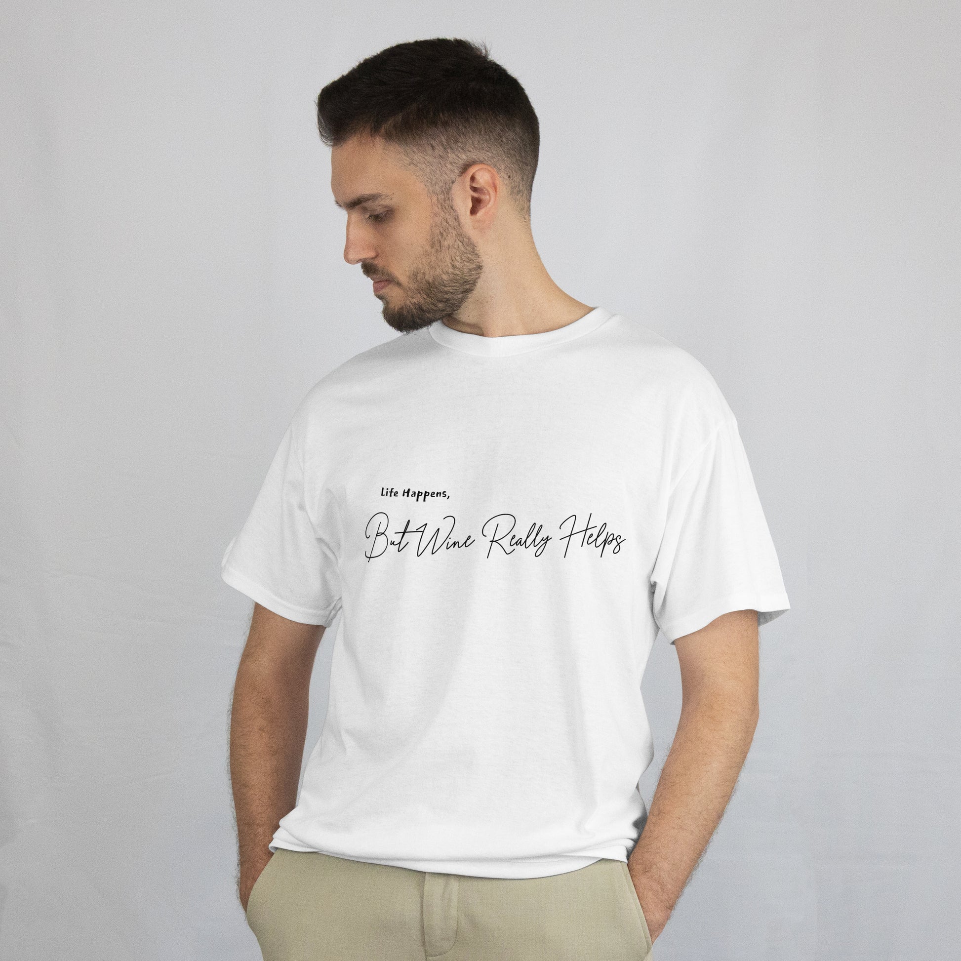 Because sometimes, a glass of wine is the best response to life’s chaos. This charming tee features the phrase "Life Happens, But Wine Really Helps" across the front—perfect for wine lovers with a sense of humor. Crafted from lightweight 4.3 oz 100% cotton, it’s ultra-soft, breathable, and ready for everything from vineyard tours to couch nights. Whether you're sipping, laughing, or just getting through the week, this shirt pairs perfectly with your favorite bottle and your favorite mood.