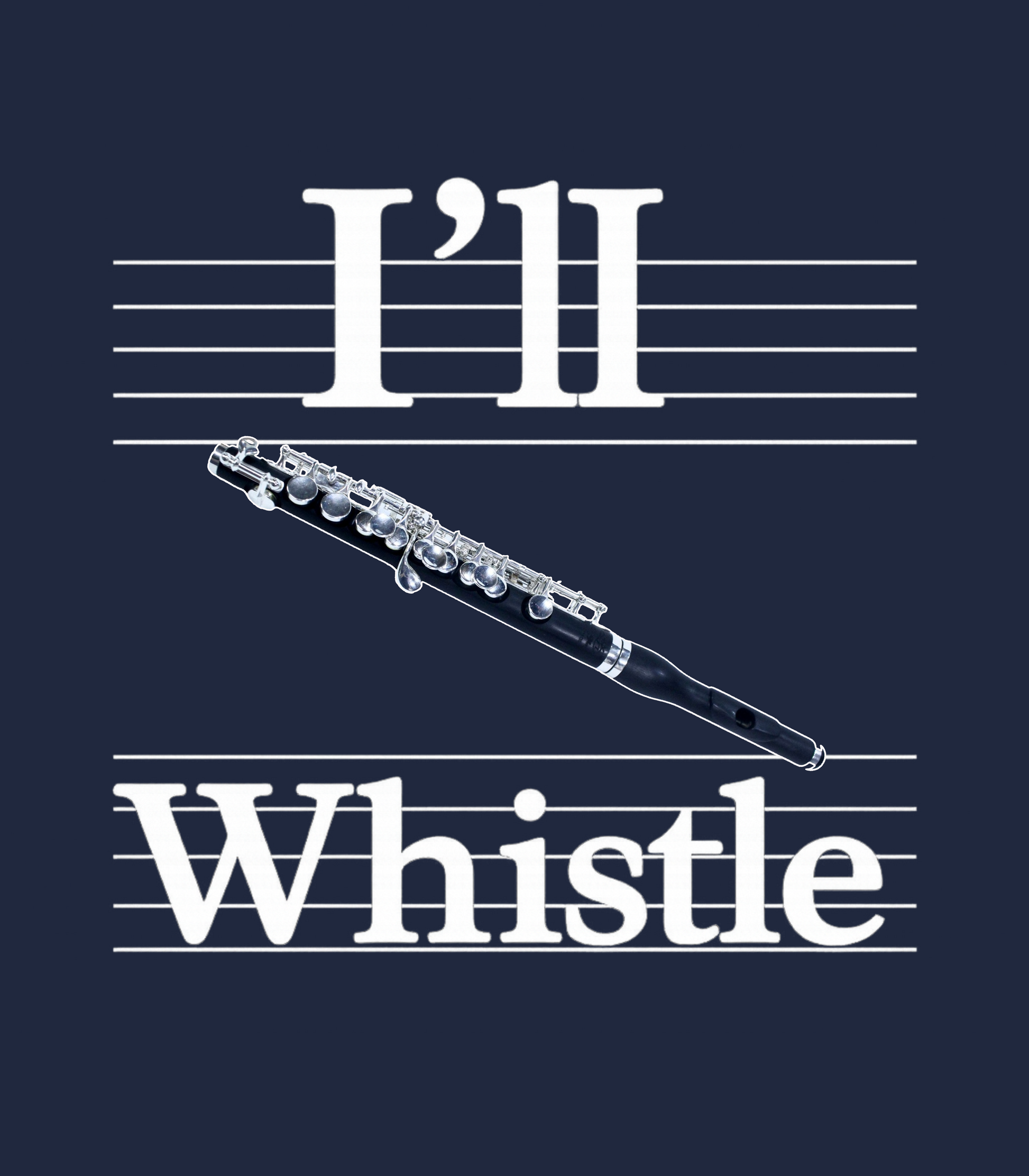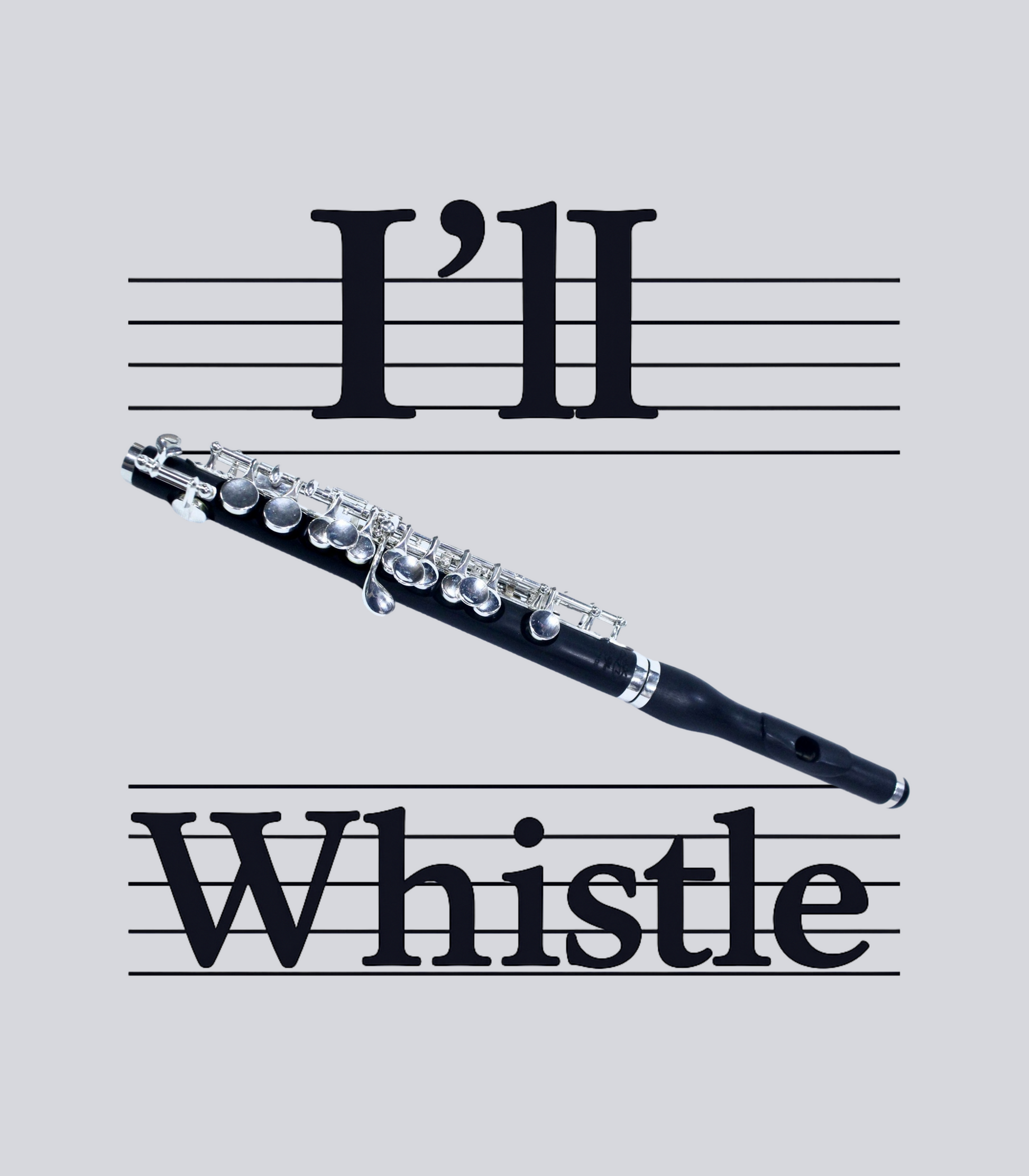 This new design features a pocket-sized piccolo graphic on the chest and a full-size back print with another piccolo paired with bold music-style lettering that reads “I’ll Whistle.”