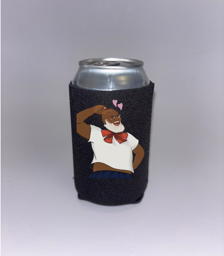 Keep your drink cold and your style bold with the Sailor Silky can hugger. Featuring Roderick McDaniel transformed into his anime alter ego—complete with white beard and sailor schoolgirl flair—this hugger is the ultimate crossover of stand-up comedy and anime culture.