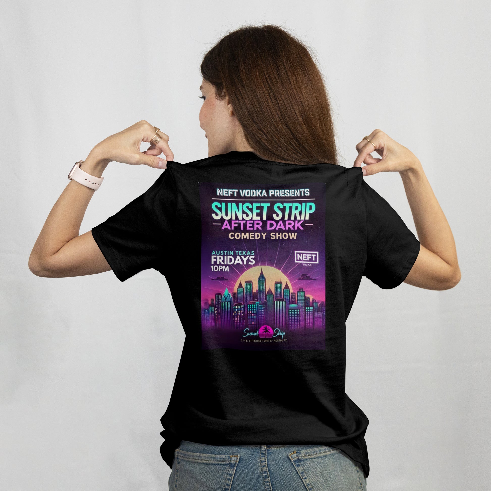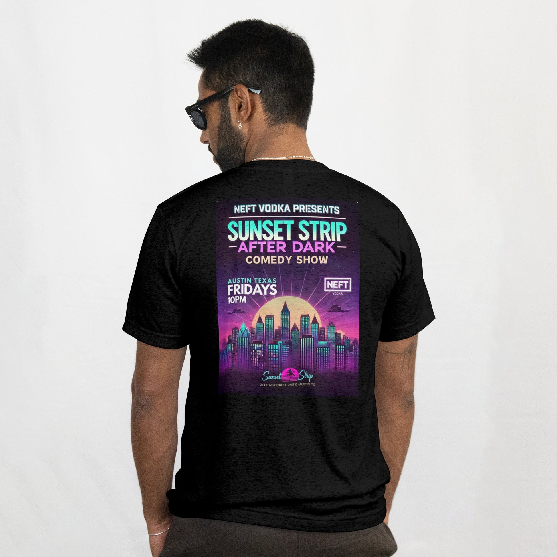 Own the night with the After Dark tee, celebrating Sunset Strip Comedy Club’s late-night Friday tradition in the heart of Downtown Austin. Every week at 10:00 PM, this showcase brings together Austin’s funniest comics and rising stars for a no-holds-barred night of stand-up, improv, and unpredictable fun.