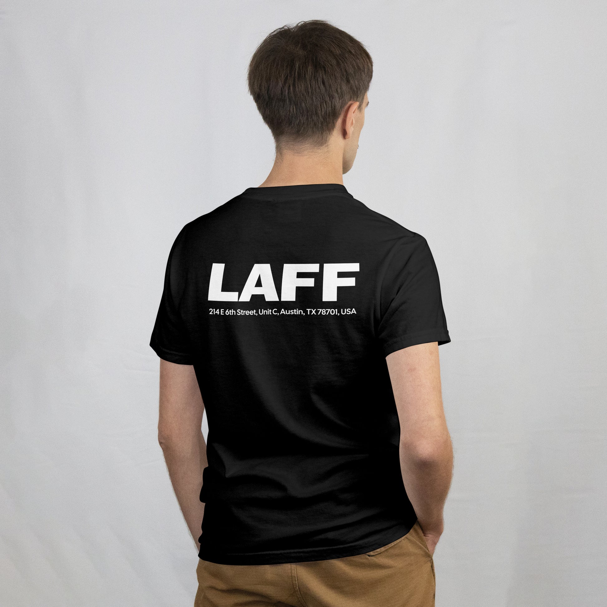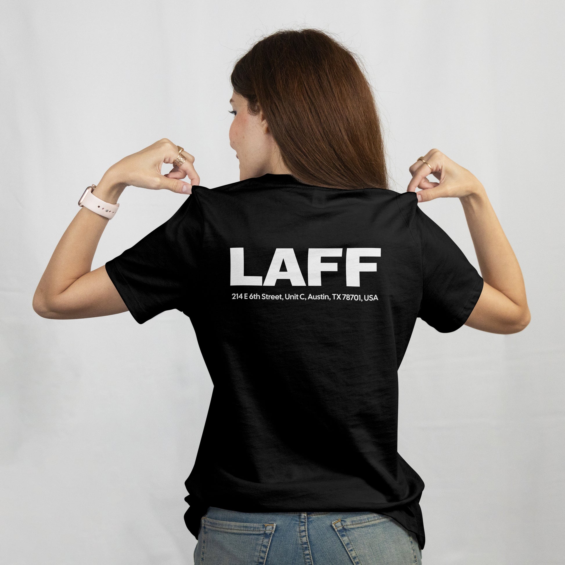 Rep one of Austin’s hottest stages for stand-up with the official Sunset Strip Comedy Club LAFF Shirt. The front features the club’s iconic logo, while the back rocks a bold LAFF graphic – a playful nod to the “STAFF” shirts worn by the club’s doormen – along with the club’s Austin address.