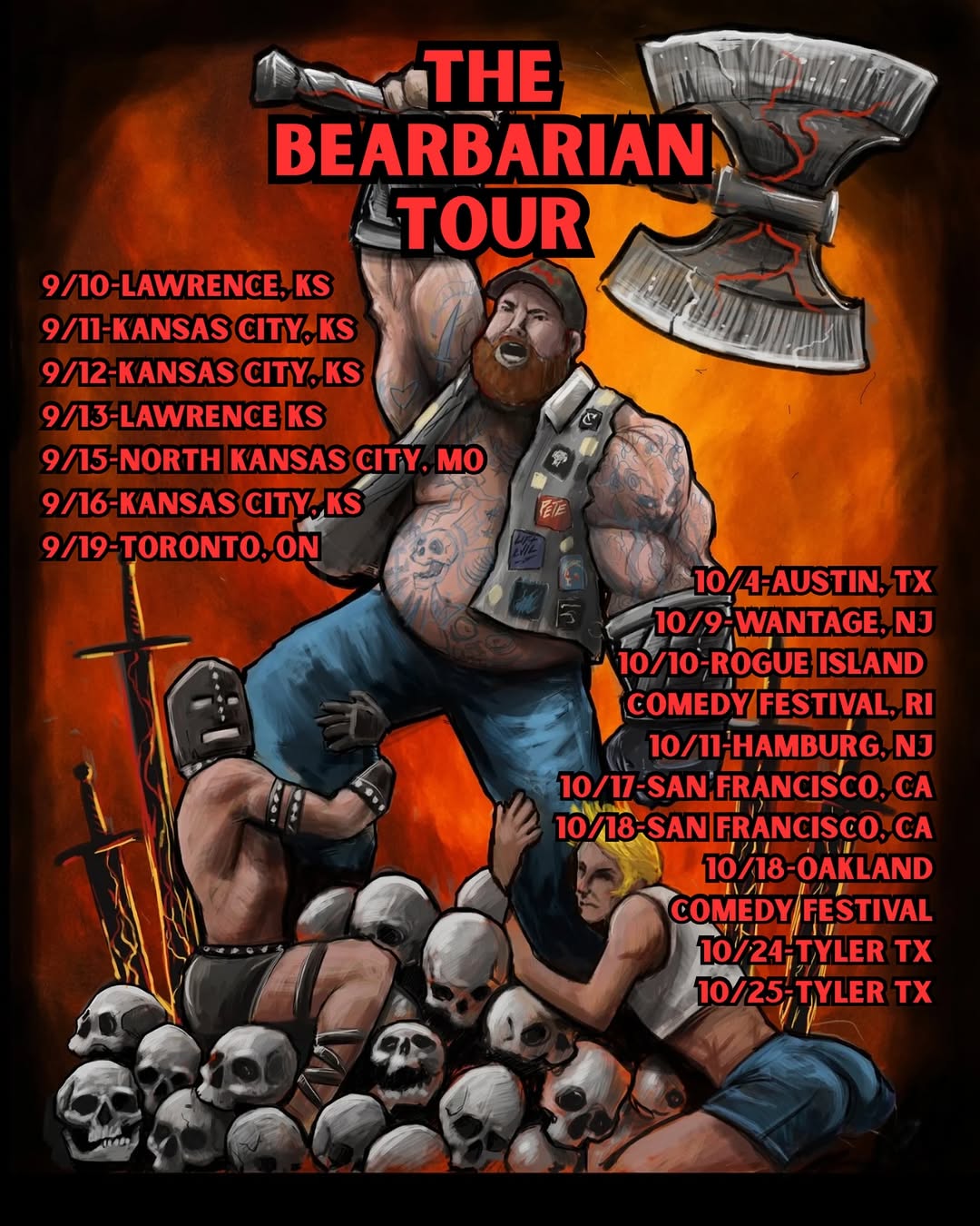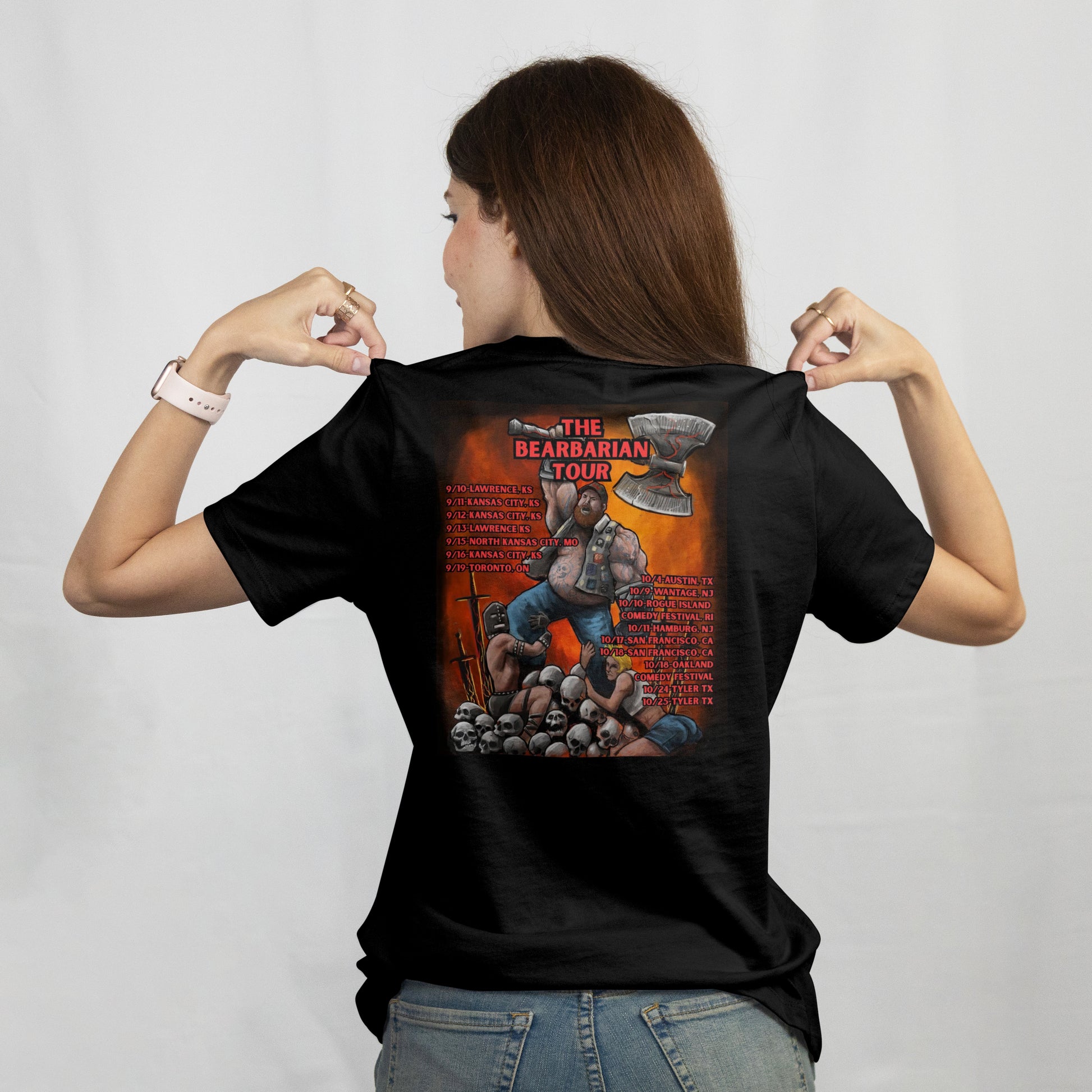 Celebrate Peter Angelo’s biggest run yet with the official Bearbarian Tour tee. This exclusive shirt commemorates his epic 6-week trek across the U.S. and beyond—kicking off in Lawrence, Kansas, hitting cities coast to coast, and even crossing the border for a stop in Toronto, Canada.